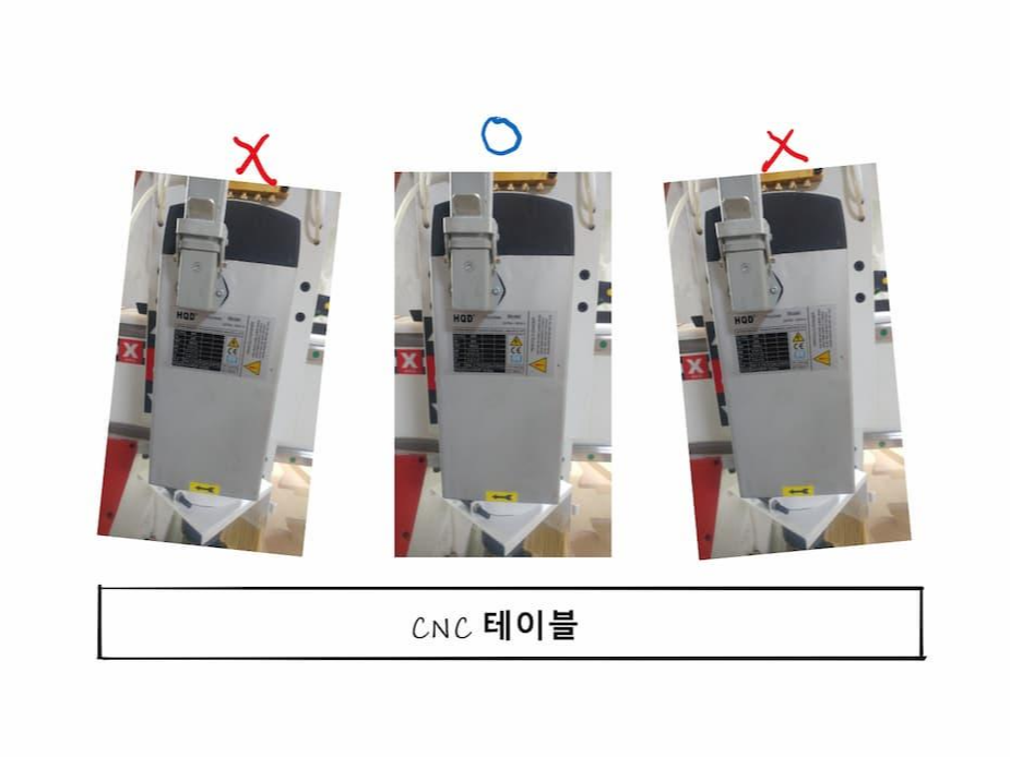 정사각형이 아닌 마름모로 가공이 되면 교정을 해야 합니다.