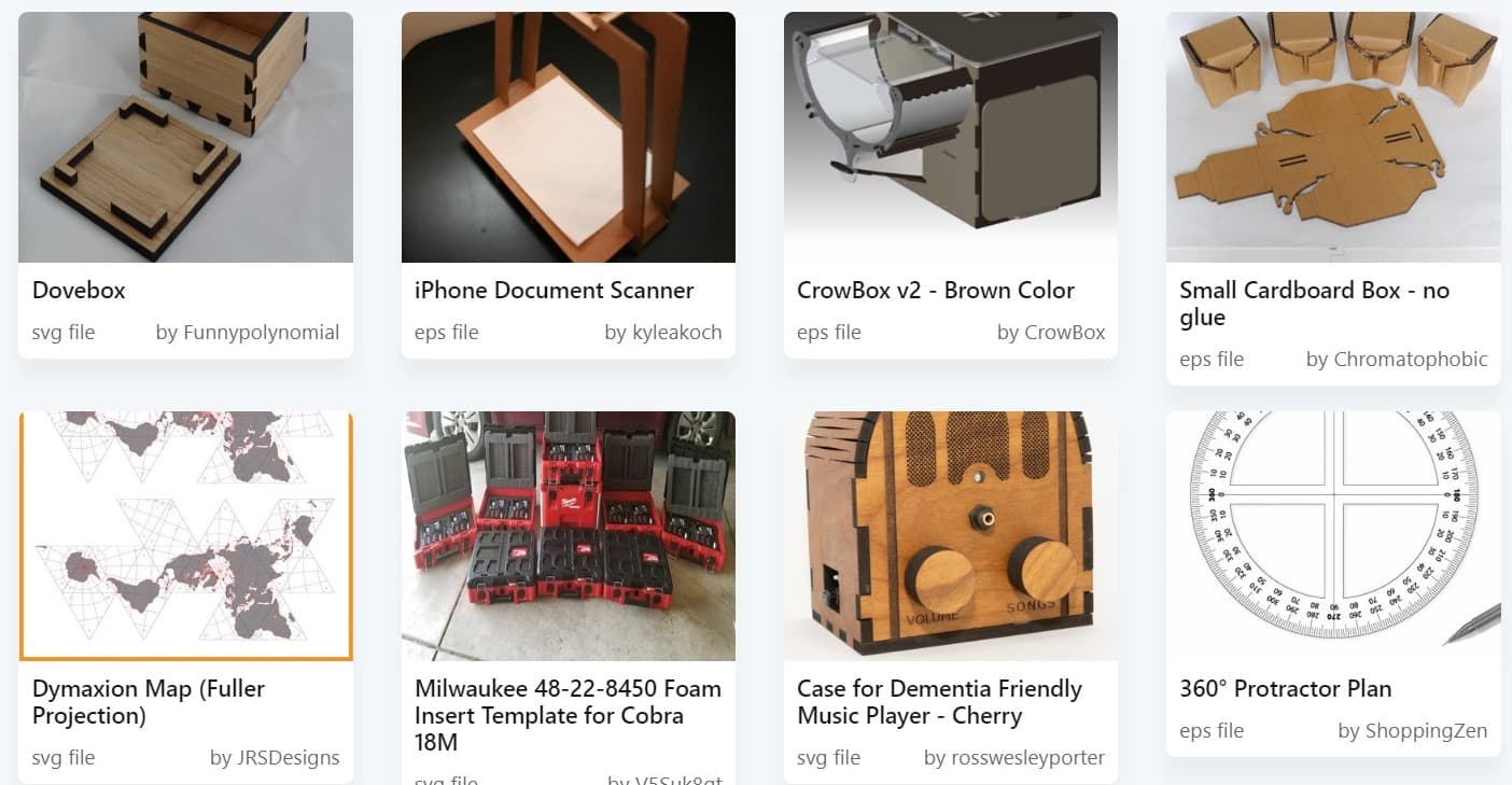 CNC 가공뿐만 아니라 레이저 커팅할 수 있는 이미지가 많습니다. 검색어 기능도 있습니다.