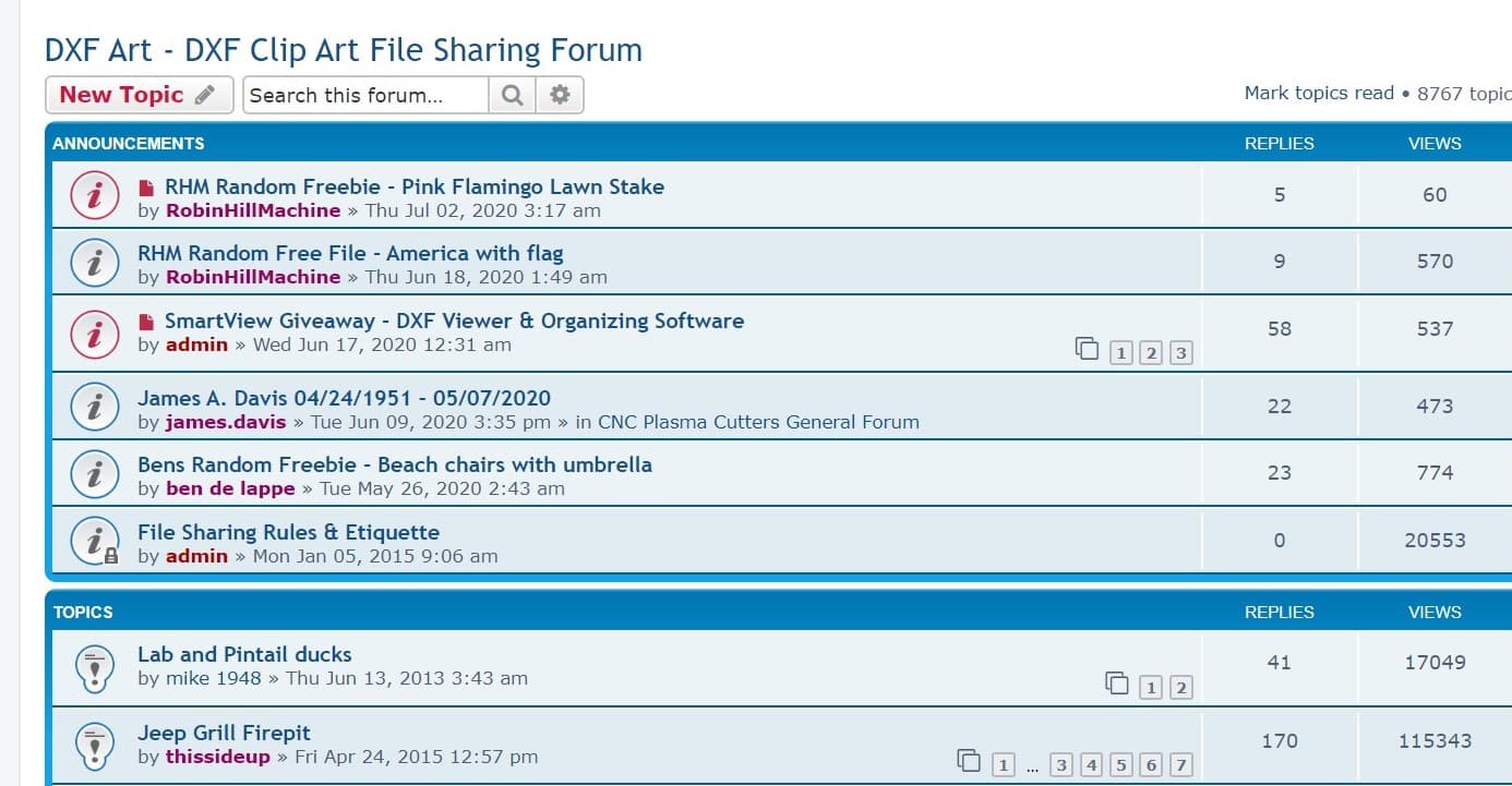 플라스마 커팅에 대해 정보를 공유하는 포럼입니다. 그러나 DXF 클립아트 이미지를 많이 공유하고 있고 회원들이 쉽게 자신의 이미지 파일을 업로드 & 다운로드합니다. 또한 디자인 원작자와 소통할 수 있는 사이트입니다.